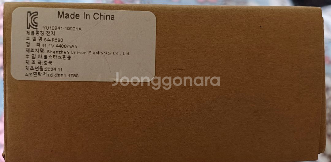 삼성 노트북 배터리 새거 판매합니다. -모델명: SA-R580 -제조일: 2024년 11월 -정격: 11.1V 4400mAh 겉박스는 좀 찌그러졌지만 안에 배터리는 새거 입니다. 사진찍으려고 잠시 꺼낸거일뿐 문제 없습니다. 일반택배(4,000원) GS25반값(2,500원) / CU알뜰(2,500원) 중고거래 특성상 교환/환불 불가합니다.