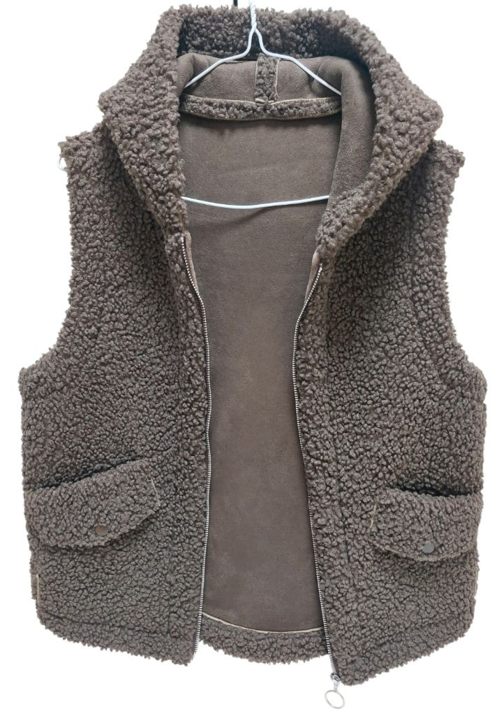 부드러운 뽀글이 소재의 브라운 후드 조끼입니다 캐주얼하게 코디하기 좋고, 따뜻하게 입을 수 있어요 ○택배 가능하고 다른 상품과 합배송 가능해요