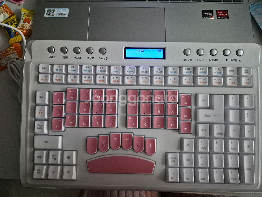소리자바 속기 키보드입니다 핑크색 키캡이 포인트입니다 상태는 사진과 같습니다 소리자바가서 300만원에 구매했습니다 구매 후 연습 2회 했습니다. 속기사 자격증 취득하려고 했지만 취업을해서 싸게 팝니다.