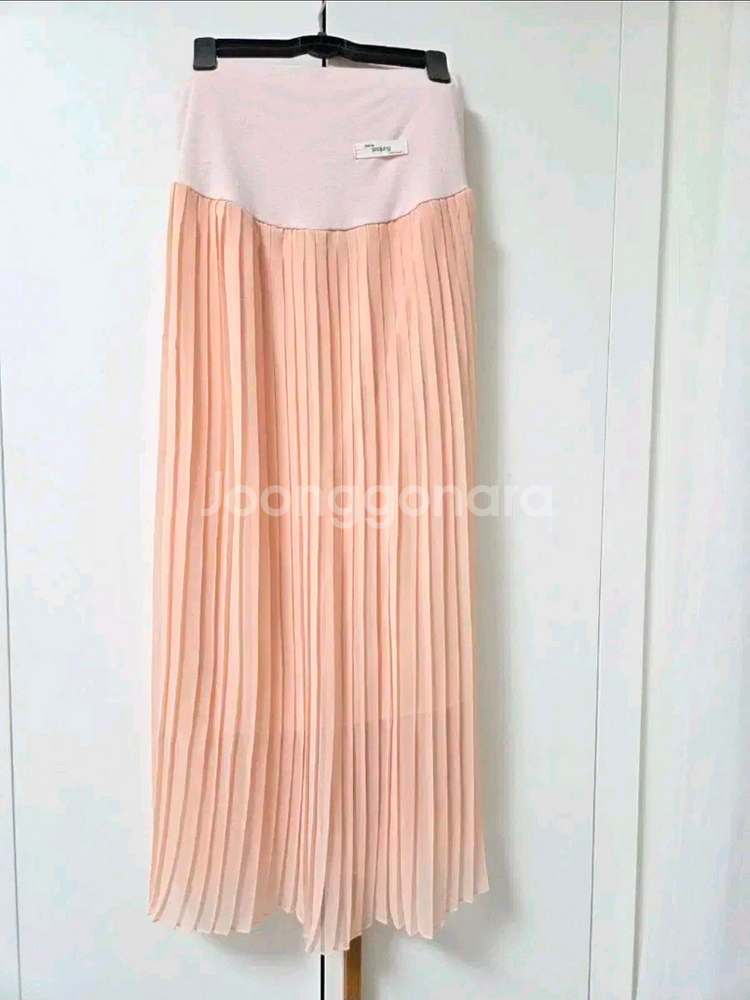 여성스러운 무드의 롱 스커트입니다. 은은한 살구색 컬러에 플리츠 디자인이 더해져 고급스러워요. 허리 부분은 밴딩으로 되어있어 만삭 임산부 분들도 편안하게 착용 가능합니다. 키 160기준 발목까지 오는 롱 기장이에요. 두번 정도 입어 컨디션 좋아요!
