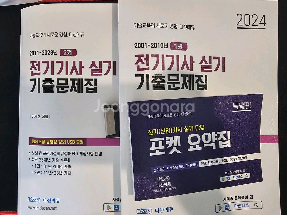 다산에듀 전기기사 실기 기출 문제집 (포켓 요약집+강의USB+PDF단답) 전기기사 합격하여 판매합니다. PDF단답은 구매 확정 후 보내드립니다. 재판매를 위해 일부러 필기 및 낙서를 하지 않았습니다. 거의 새거라고 보시면 됩니다. 합격 기운 받아가세요!