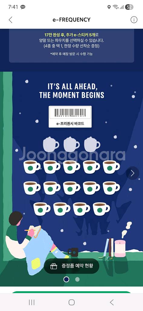 스타벅스 프리퀀시 일반 2장/미션1장으로 교환원해요