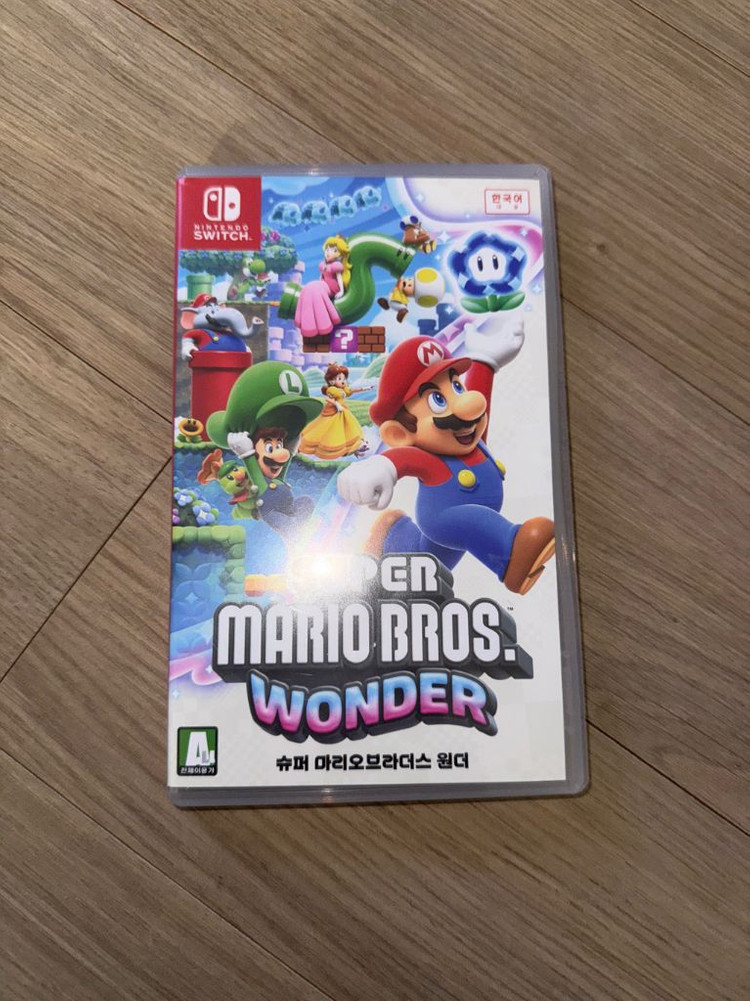 닌텐도 스위치용 슈퍼 마리오 브라더스 워nder 게임입니다. 케이스 상태 양호하고 정상 작동합니다.