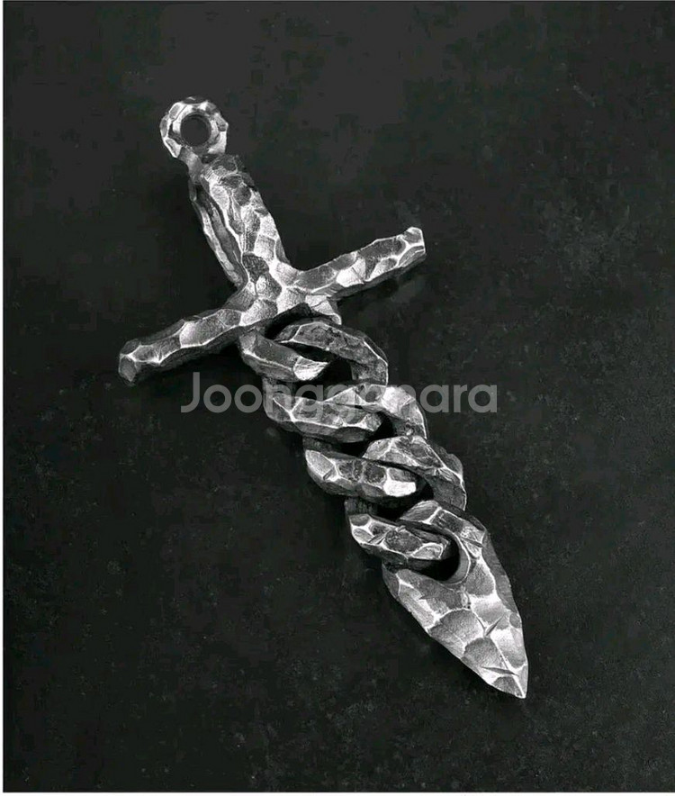 제품 정보 브랜드: Oceanora 제품명: 홀리 소드 펜던트 사이즈: 약 108 × 50 mm 무게: 약 85.5 g 소재: 925 스털링 실버 제작 방식: 핸드메이드 수공예 구성: 펜던트 단품 (체인 미포함) 제품 설명 Oceanora 홀리 소드 펜던트는 925 스털링 실버로 제작된 대형 사이즈의 핸드메이드 주얼리로, 정교한 수공 각인과 묵직한 무게감이 남성적인 존재감을 강조합니다. 성검을 모티브로 한 상징적인 디자인은 바이커, 스트리트, 하드코어 스타일과 자연스럽게 어우러지며, 단독 착용만으로도 강렬한 포인트를 완성합니다. 본 제품은 펜던트 단품으로 제공되며 체인은 포함되지 않아, 개인의 취향에 맞는 체인과 자유롭게 매치할 수 있습니다. 대량 생산이 아닌 수작업으로 제작된 제품으로, 착용하는 순간 차별화된 개성과 강한 존재감을 표현할 수 있습니다.