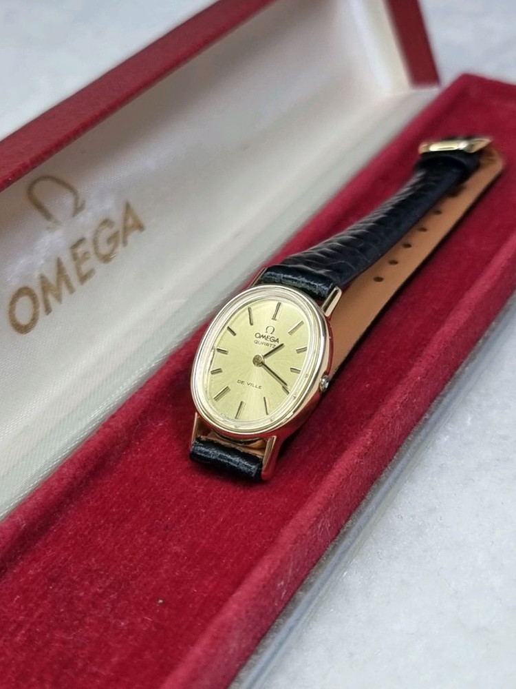 오메가 드빌 빈티지 오벌 샴페인 선레이 다이얼 쿼츠 여성시계 까르띠에 베누아를 연상시키는 우아한 타원형 오벌 케이스에, 고급스러운 샴페인 선레이다이얼이 어우러진 오메가 드 빌 모델입니다. 빛에 따라 은은하게 변화하는 깊은 샴페인골드 컬러는 세련된 분위기를 자아내며, 쿼츠 무브먼트로 완성된 빈티지 드레스워치입니다. 클래식과 감성을 모두 담은, 까르띠에 베누아 감성의 합리적 대안입니다. 오메가 정품 핀버클과 정품 케이스가 함께 구성으로 제공됩니다. -브랜드 : 오메가 -모델명 : De Ville -상태 : 18K 도금도색, 오버홀 완료 -무브먼트 : 쿼츠 무브먼트 -연식 : 1979년 -사이즈 : 21.5mm x 18mm -스트랩 : 오메가 정품 버클 / 맞춤제작 소가죽 스트랩 -구성품 1. 오메가 시계 본품 2. 오메가 정품 케이스 3. K1 정품 보증서 (퀄리티 등급: Very Good) * 판매내역 없고, 찔러보기 하시는분 연락하지 마세요 * 예약시 예약금 20만원 * 네고불가 / 교환불가