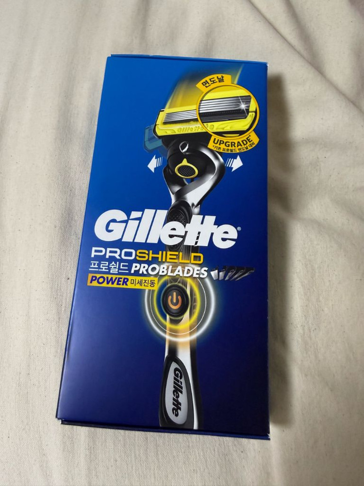 질레트 프로쉴드 옐로우 파워 면도기 핸들 + 면도날 4p (정가 38,410원)