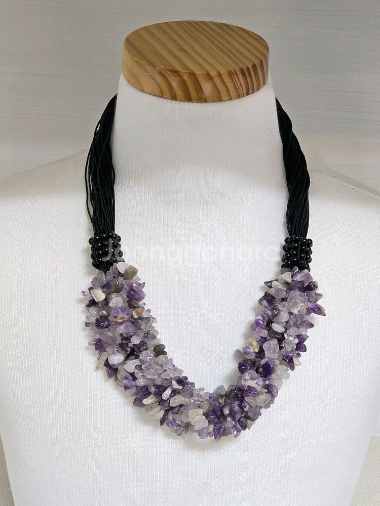 개인정보(거래정보)를 주고받는 행위는 사기에 노출될 수 있으므로 즉시 중고나라로 신고해 주세요공방에서 만든 자수정 원석이 알알이 박힌 수공예 목걸이 입니다 얇은 끈으로 여러겹 엮여있어 독특한 분위기를 연출할 수 있습니다 매력적인 자수정 목걸이 저렴하게 가져가세요. 선물용으로도 좋습니다