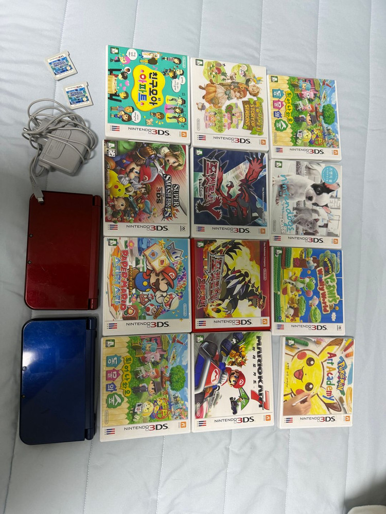 닌텐도 3ds xl new 기기 2대와 칩 14개 일괄 판매합니다. 파란색 기기는 터치펜 없습니다. 기기 작동 잘 됩니다~ 목장 이야기, 마리오, 친구모아 아파트, 동물의 숲, 닌텐독스 캣츠, 포켓몬스터 등 있습니다! 칩 종류는 사진에서 확인해주세요! 충전기도 같이 드려요!