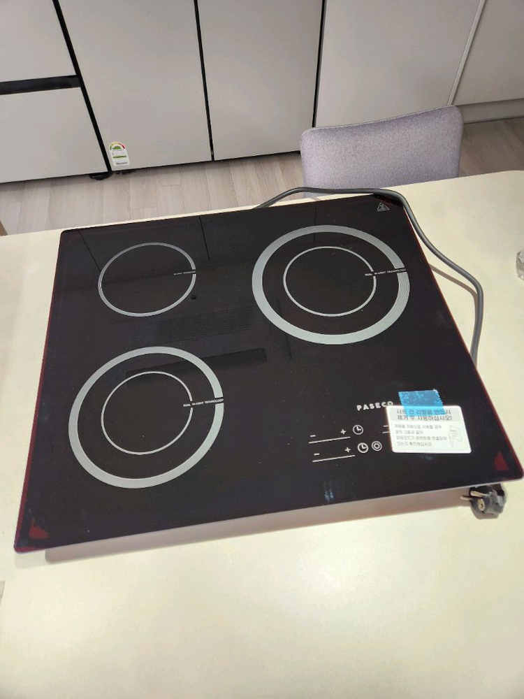 파세코 전기레인지 제품이에요 신축아파트 기본옵션으로 제공받은건데, 인덕션 쓸거라 하이라이트는 창고에 보관중입니다. 작동여부만 확인해보고 보관중이라 미사용제품이나 다름없습니다. 혹시 대량구매하실거면 문의주세요. 빌트인타공이 56x48cm로 타공되어있으면 설치 가능합니다.