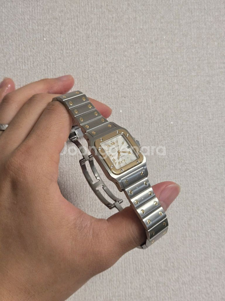 까르띠에 산토스 갈베 라지 콤비 오토매틱 시계(2319) 입니다. 현행 산토스보다 갈베가 훨씬 비율상 이쁘다고 생각합니다. 2024년 10월에 고이비토에서 구매한 내역이 있고 2025년 2월에 정식서비스센터에서 오버홀 및 까보숑교체와 시계판 교체까지 완료해서 바로 착용 가능합니다. 폴리싱은 하지 않아 신품처럼 완벽히 깨끗한 상태는 아니지만 20년정도 된 제품인걸 생각하면 깔끔한편입니다. 시계판이 골드 인덱스에 입체판이라 특이하고 이쁩니다. 일반적인 기요쉐판 갈베와는 비교가 되질 않게 고급스럽습니다. 날짜판이 6시쪽에 있는 같은사이즈의 쿼츠모델도 있긴하지만 초침이 이쁘게 흐르는 오토매틱과는 비교가 안된다고 생각합니다. 코는 8개가 있고 17센티 손목정도까지는 착용이 가능할것 같습니다. 금액은 정식 오버홀 한걸 감안해서 위와 같이 생각하고 있습니다. 고민 되실까봐 금액 좀 내려보았습니다. 창원에서 직거래가 가능하고 그 외 지역 택배거래합니다. 어느정도 네고는 가능하오니 편하게 채팅주세요. 감사합니다.