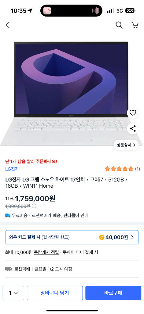 LG 그램 17인치 노트북이에요. 인텔 12세대 Evo 프로세서와 512GB 저장공간으로 성능 좋고, 가볍고 휴대성이 뛰어난 제품입니다. 노트북전용 c타입 충전기, 유선 마우스 있어요 게임 돌아가요