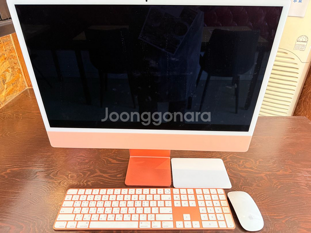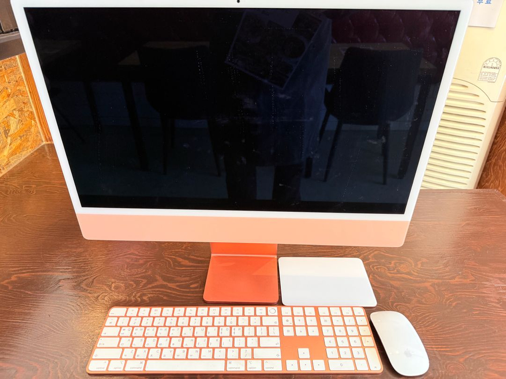 애플 아이맥 24형 M1 칩 2021년 모델 판매합니다 - 16GB 메모리 - 512G - 색상은 오렌지 매직키보드, 매직마우스, 트랙패드 포함이며, 박스는 없습니다