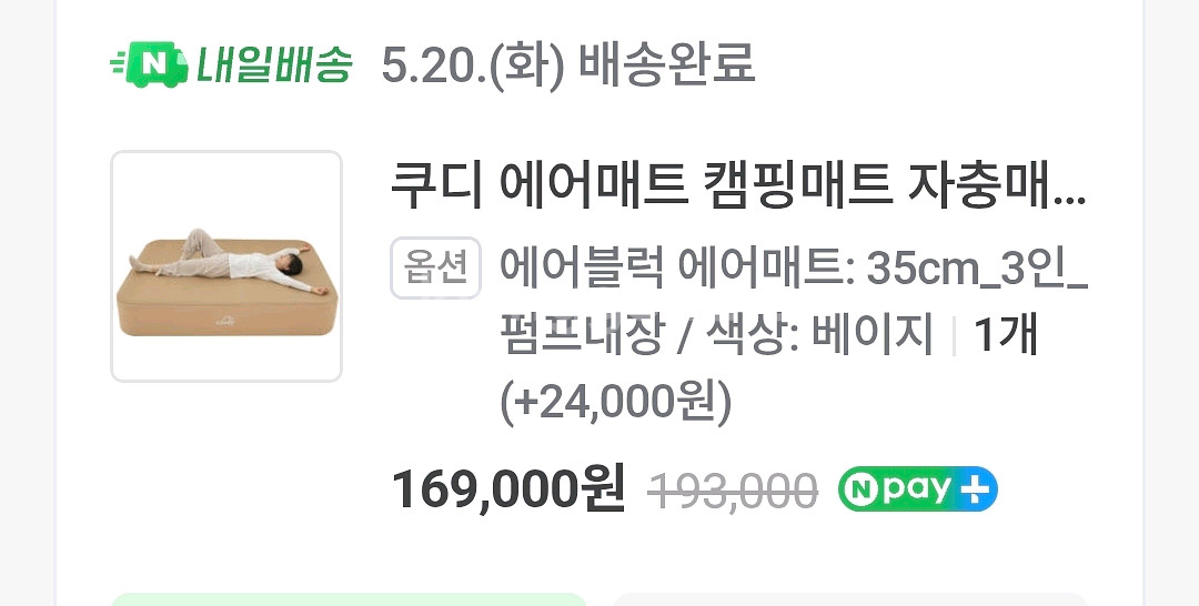 쿠디 에어매트 35cm 3인용 사이즈입니다 색상은 베이지입니다 올 5월 구입 1회사용 안전거래환영