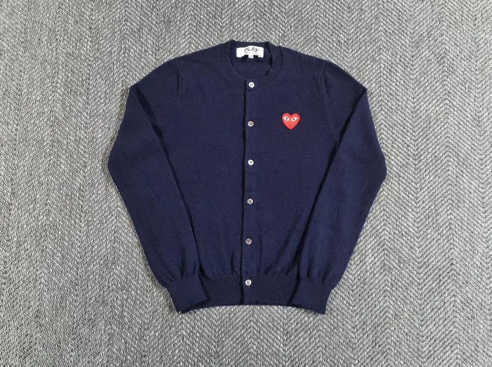 구매 원하시는 분만 편하게 연락 주세요 🙏 - 단순 판매가 아닌, 각 의류의 히스토리와 브랜드 아카이브를 함께 소개해 드립니다. CONDITION: A / SIZE: M 어깨36 가슴45 팔62 총장58 전체적으로 컨디션 좋습니다. Comme des Garcons Play 네이비 하트 자수 가디건 2002년부터 시작된 라인으로 단순하면서도 상징적인 하트 로고가 시그니처로 필립 파고 owski 디자인 시초 디테일은 라운드넥, 전면 버튼업, 왼쪽 가슴 붉은 하트+눈 로고 자수, 리브드 커프스 & 밑단으로 울100% 소재로 보온성과 착용감 우수 / 기본 셔츠 티셔츠 위에 레이어드하기 좋으며 사계절 활용 가능. ▪️ 안전거래O / 이외 거래 시 배송비 1,000원 할인. ▪️ 택배비 4,000원 제주도서산간 7,500원 입니다. ▪️ 전체 판매글 실측 제공. 사이즈 미스 환불 불가. ▪️ 실측 방법에 따라서 1-3CM 차이 있을 수 있음. ▪️ 중고 의류 특성상 환불 / 반품 / 교환 불가능함. ▪️ 조명 빛에 따라서 색감 차이가 있을 수 있어요. ▪️ 새 옷이 아니니, 착용 전에 세탁을 권장합니다. ▪️ 예민하신 분들은 신중하게 고민 후 연락주세요.