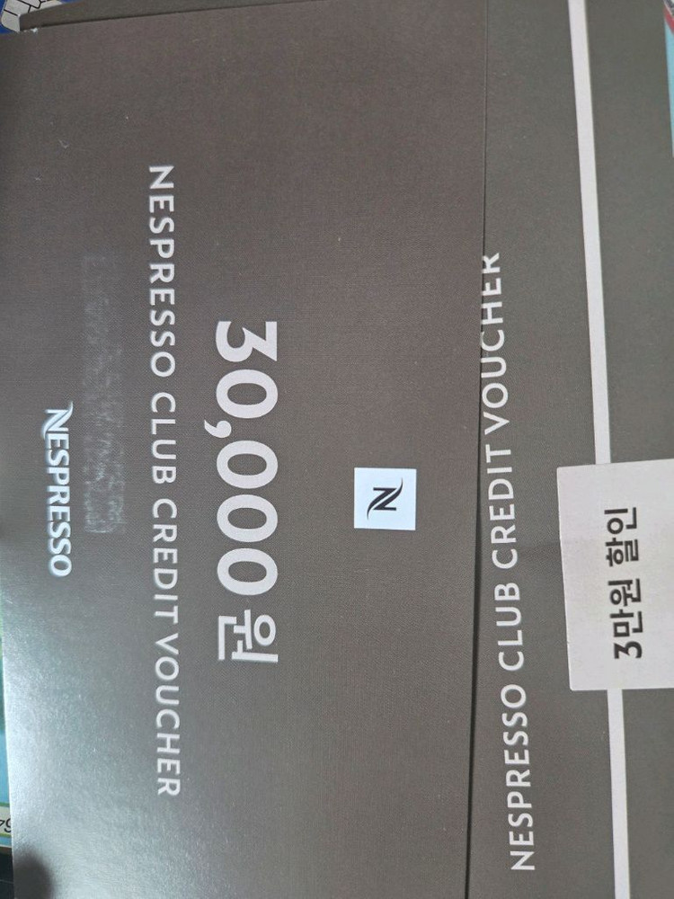 네스프레소 클럽 회원에게 제공되는 3만원 상당의 크레딧 바우처예요. 100캡슐이상 구매시 사용가능입니다 네스프레소 온 오프라인 사용가능인데 온라인거래특성상 바우처번호 보내드릴께요 온라인만 사용가능할듯합니다