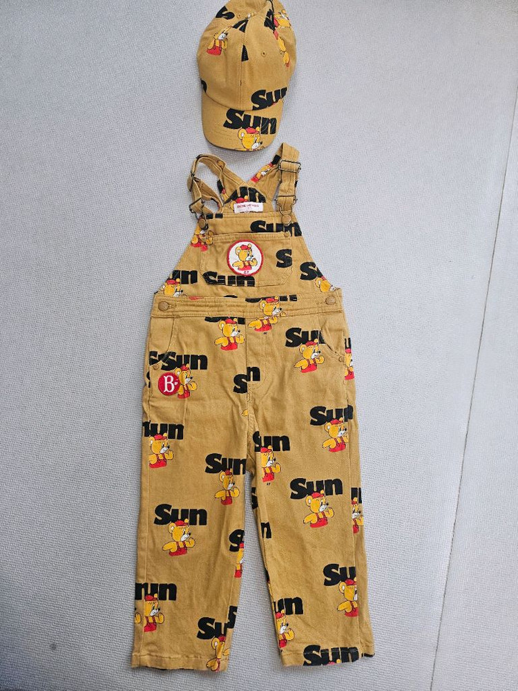 베베드피노 썬베어 멜빵바지와 모자 세트 일괄 팝니다~ 모자는 썬베어 그림이 복불복이여서 교환 반품 여러번해서 괜찮은 패턴 얻은 모자 입니다 중고특성상 예민맘은 피해주세요