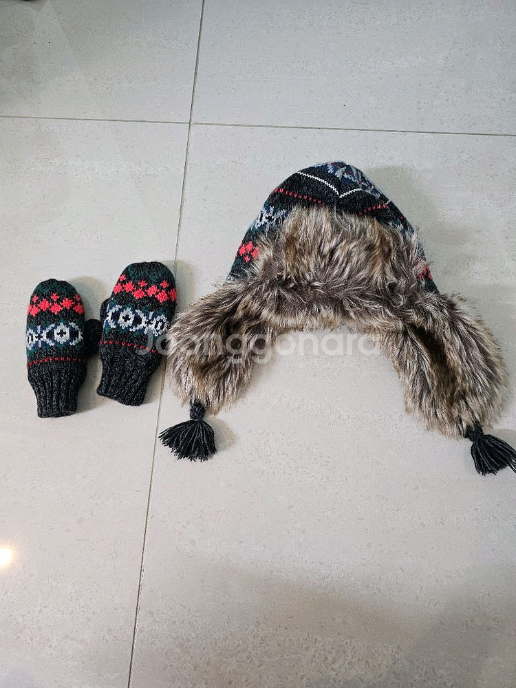 귀달이 털모자와 벙어리 장갑 세트입니다 겨울에 따뜻하게 착용하기 좋은 아이템입니다 노르딕 패턴이 들어가 있습니다 멋스러워요 이뻐서 사놨는데 사이즈미스로 팔아요 53센치 새상품 고급스러움