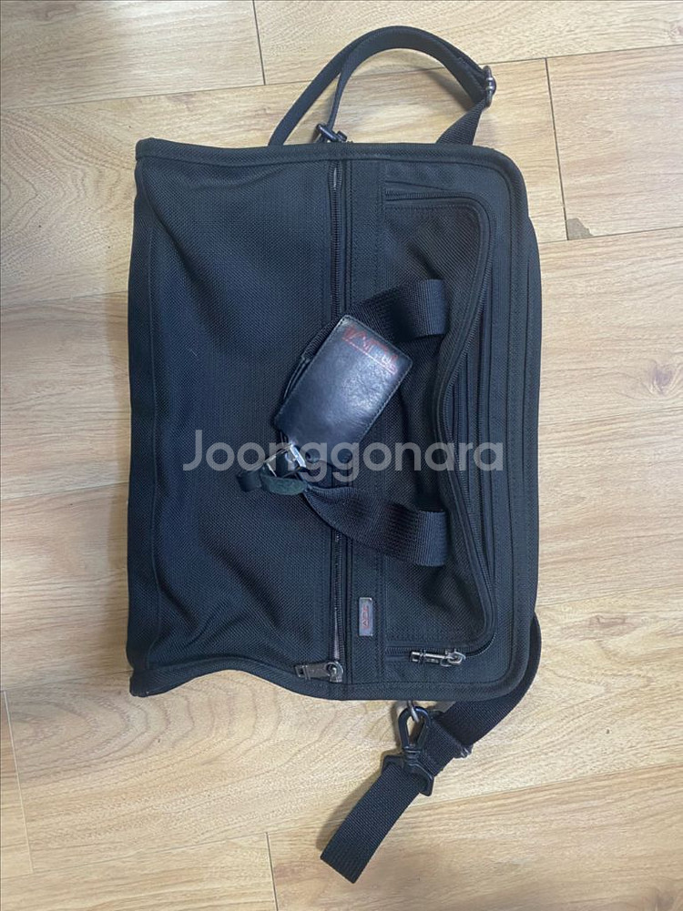 투미 브랜드의 블랙 컬러 브리프케이스입니다. 여러 포켓과 수납공간이 있어 실용적이고, 전체적으로 깔끔한 상태예요. 비즈니스용이나 일상용으로 활용하기 좋습니다.