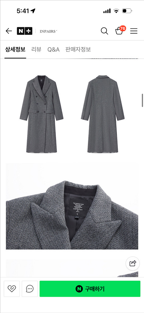 플리츠 롱 코트예요. 깔끔한 그레이 컬러로 어떤 스타일링에도 잘 어울리고,헤링본 직조로 고급스러워요~ 생로랑 더블코트 스타일 새상품 할인해서 판매합니다 편의점 반택은 배송비 무료입니다