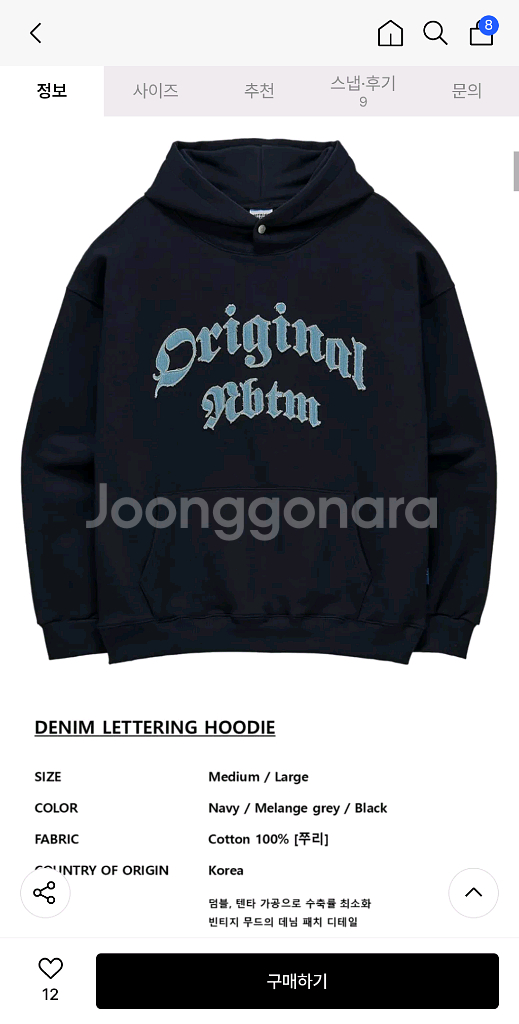 낫띵이즈베럴댄미 레터링 후드티입니다. 네이비 컬러이고 M사이즈입니다. 새제품