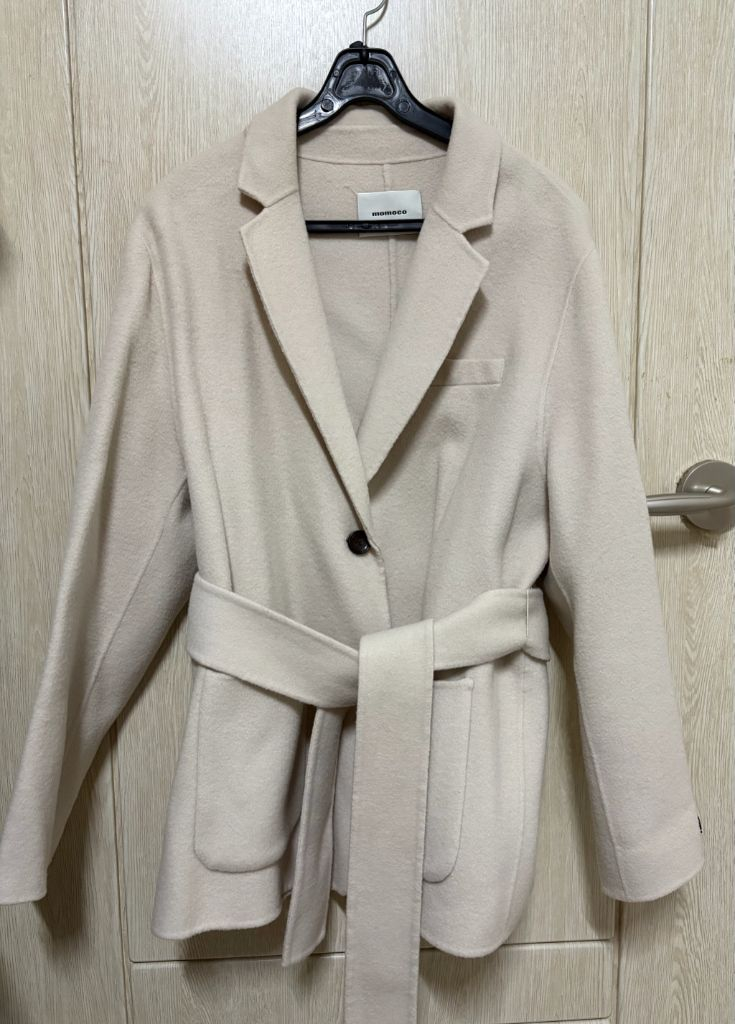 m택 스트랩 햔드메이드 자켓 총장68 가단 51 밸트해서 입어도 되고 안하고 입어도 이뻐요 아이보리색상