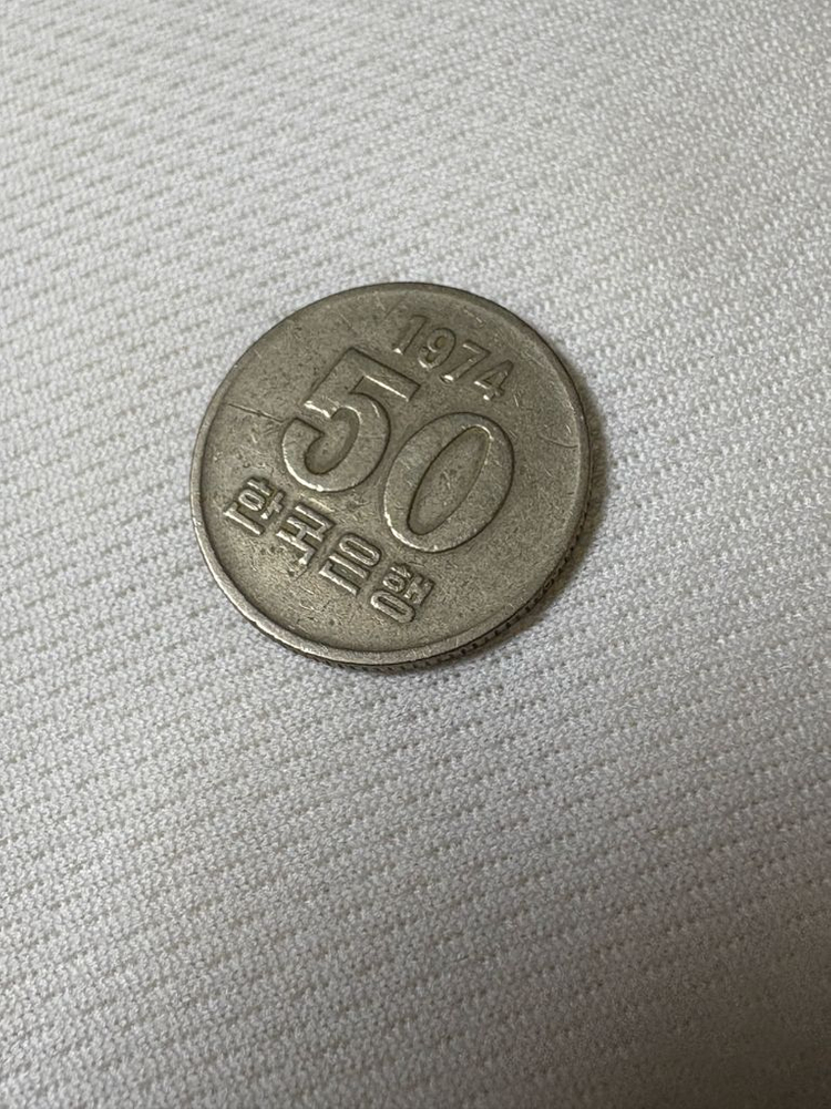 개인정보(거래정보)를 주고받는 행위는 사기에 노출될 수 있으므로 즉시 중고나라로 신고해 주세요1974년 발행된 한국 50원 동전입니다. 상태확인해주시구 직접 와주시는 직거래 아니면 우편으로만 거래합니다