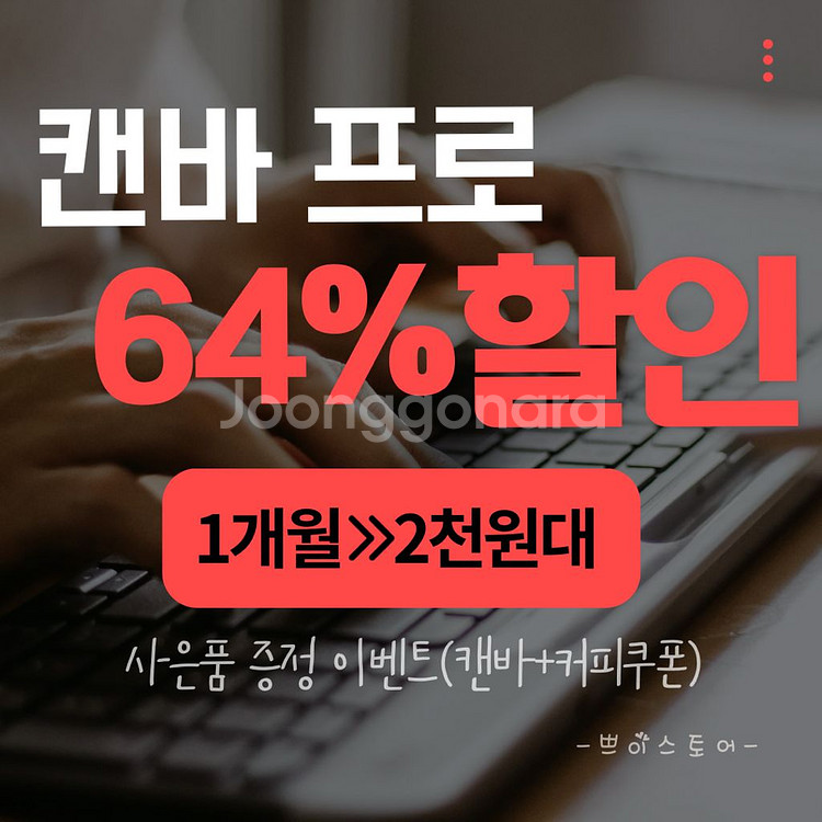 캔바프로 1년사용 (정가) 99,000원 👇👇 🥳 쁘이스토어 할인가 🥳 1년사용-34,900원!! (리뷰시 1년권 추가증정으로 1년 1만원대) 정품100%이며 프리미엄 기능 모두사용가능 혹 상품에 문제가 생길시 200%AS 해드려요!🥳 리뷰사은품2-커피쿠폰까지~~쏩니당!!