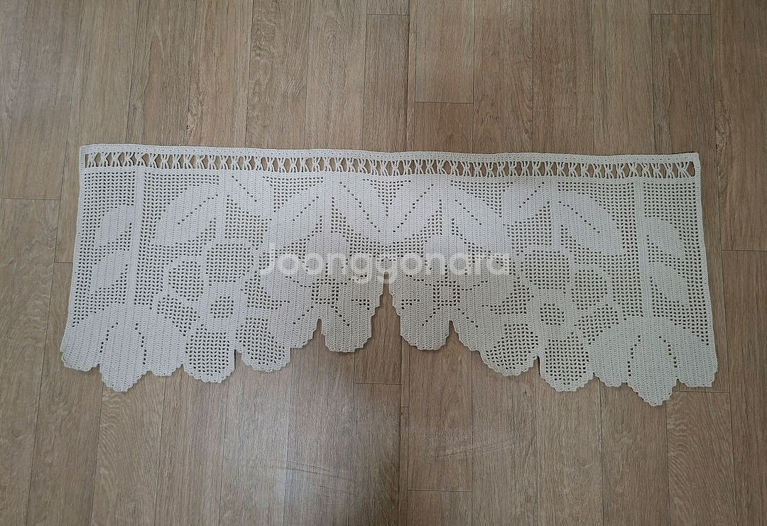 아이보리 컬러의 고급스러운 꽃무늬 레이스 바란스예요. 섬세한 꽃과 잎사귀 패턴이 정말 예쁘고 상태도 깔끔해 보여요. 분위기가 확 달라질 것 같아요! 크기는 102*40 입니다.