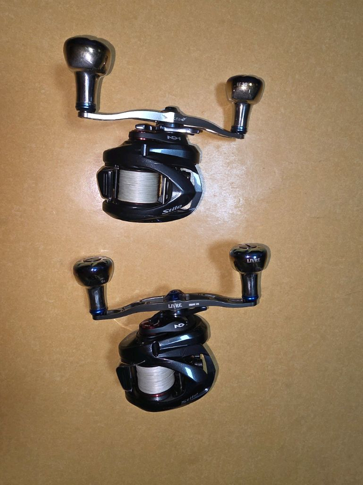 정품16 스티레팝니다 총2개이며 1번릴 사용량많은것은 릴상단에 기포 조금보이고 다른특이사항은없습니다 리브레 크랭크 120 OC LTD입니다 35입니다 원래핸들은 미사용입니다 필요하시면 넣어드립니다 점품이며 보증서 포함입니다