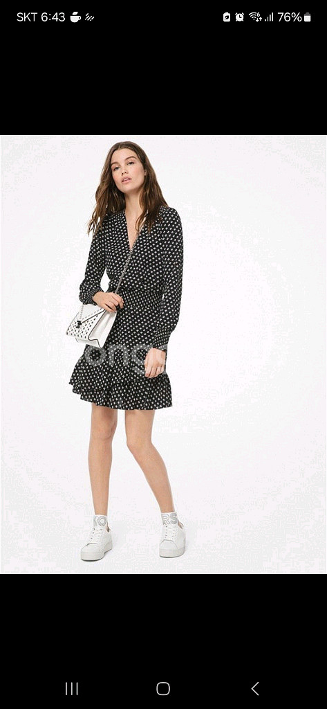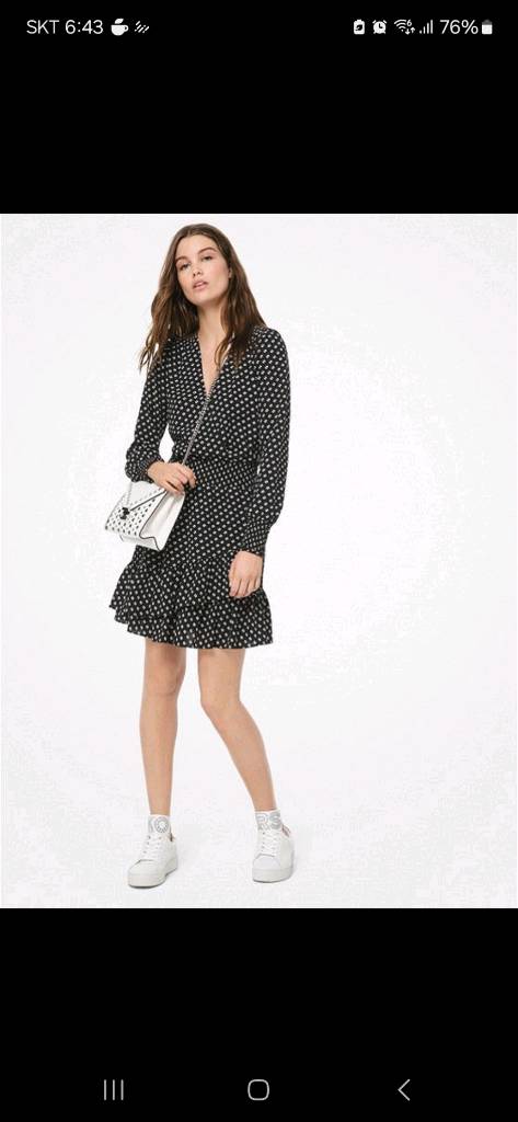 마이클 코어스 원피스 XS 사이즈입니다. XS이지만 55분들에게 맞습니다 택만 제거한 새상품 입니다 검정색 바탕에 흰색 도트 무늬가 있는 롱 슬리브 디자인이에요. 캐주얼하면서도 세련된 느낌을 줍니다. 택포가격입니다