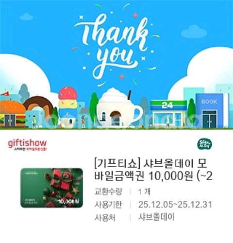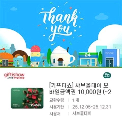 *상품명: 샤브올데이 3만원 금액권 (1만원×3개) *유효기간: 25.12.31 *판매가: 20,000원 *1만원 금액권 3장이며, 총 3만원 금액권입니다. 아래 설명 읽어보시고 즉입 가능하실 때 연락주세요! [상품설명] 본 상품권은 샤브올데이 매장에서 현금처럼 사용 가능한 모바일 상품권입니다. [이용안내] - 샤브올데이 매장 방문 시에만 사용 가능합니다. (배달앱 및 온라인 사용불가) - 매장 상황에 따라 제공 메뉴가 일부 다를 수 있으니 이용 전 해당 매장으로 확인 부탁드립니다. - 이용시간 및 휴무일, 예약은 방문하실 매장으로 문의 바랍니다. - 본 상품은 샤브올데이 각 지점별 네이버플레이스 쿠폰 / 카카오톡 플친 쿠폰과는 중복 할인이 불가합니다. - 평일/주말 모두 사용이 가능합니다. [유의사항] - 브랜드사 정책에 의해 2인 이상 주문이 가능합니다. - 이용금액 초과시 다른 결제 수단과 함께 결제 가능합니다 - 사용처(샤브올데이 매장)에서 이용금액에 해당하는 현금영수증 발행이 가능합니다. - 타 쿠폰 중복 사용이나 포인트 적립 및 제휴카드 할인은 브랜드사 정책에 따릅니다. - 분할 사용이 가능하며 남은 잔액은 다시 사용하실 수 있도록 저장됩니다.