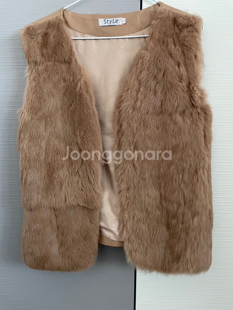 앞면 퍼 베스트 뒷면은 가죽 느낌 소재. 라벨 없어서 가죽 진위 식별불가, 실측 사이즈 참고 55추천해요 퍼 상태.깨끗해요 예민한 분 사양