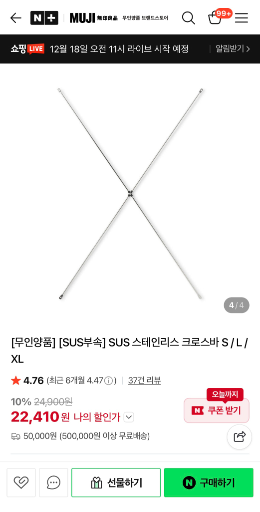 무인양품 SUS 스테인리스 크로스바 s 나사볼트 다 있고 깨끗합니다 사용하다가 백패널로 바꿔서 사용안하게되서 팝니다 택포 다음날배송(금요일 주문시 월요일배송)