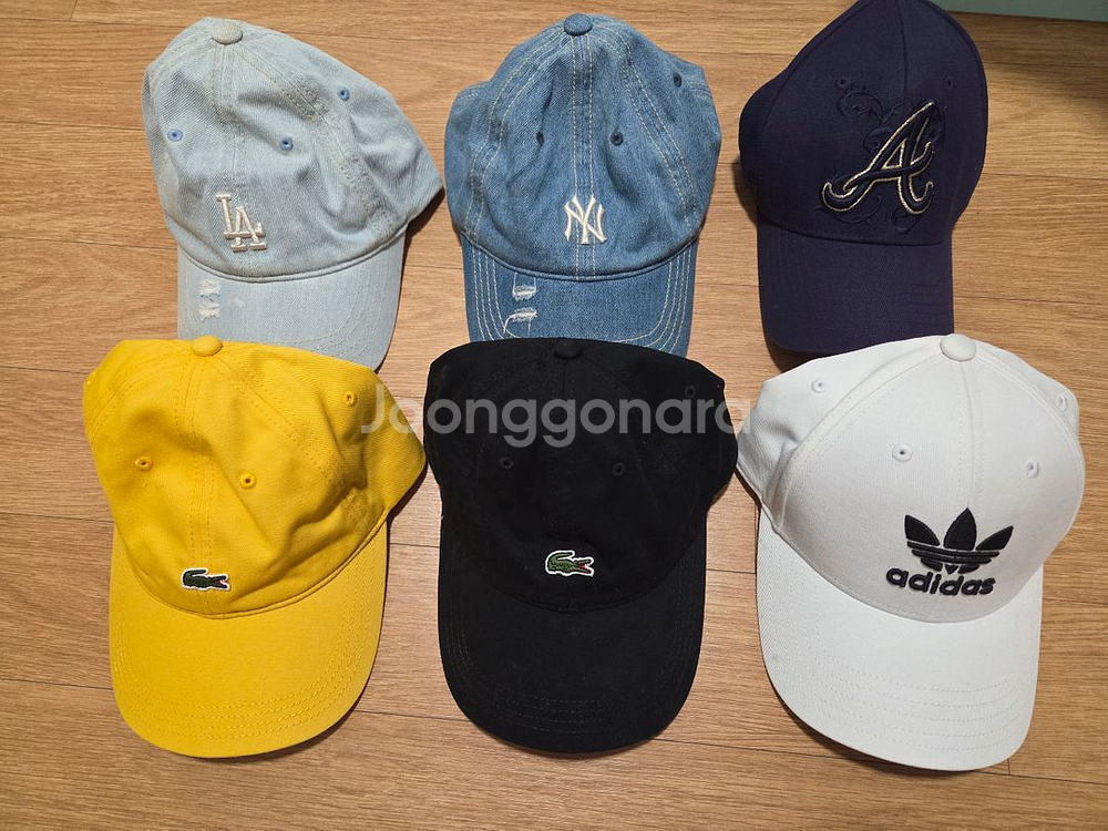 모자 5개 일괄 판매합니다! MLB, 라코스테, 아디다스 브랜드 모자가 포함되어 있습니다 색상은 데님, 네이비, 노랑, 검정, 흰색 등 다양합니다 대체적으로 깨끗해요. 편하게 쓰실 분들께 추천드려요~ 검정 라코스테는 판매되었습니다. - LA데님 2개: Free 사이즈 (정가 각 39,000) - 라코스테 노랑: 58cm (정가 7만원) - 네이비 MLB: S-M 사이즈 - 아디다스 Free