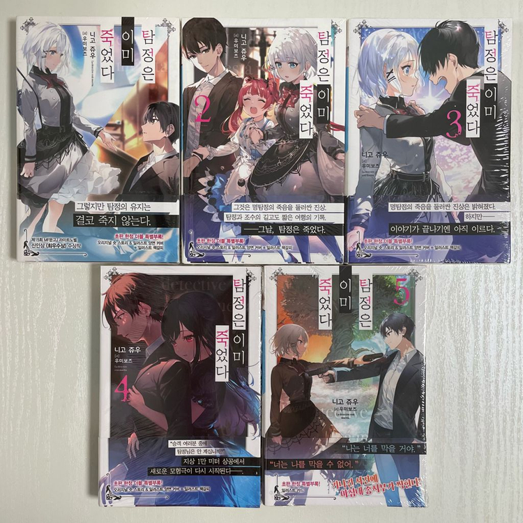 ※문의하시면 구매의사는 꼭 밝혀주시길 부탁드리겠습니다:) ※맨 마지막 사진과 프로필 공지사항 꼭! 읽어주세요. 적힌 가격은 전부 운미포 가격입니다. ㅡㅡㅡㅡㅡㅡㅡㅡㅡㅡㅡㅡㅡㅡ 탐정은 이미 죽었다 1-5권 올초판 올미개봉 세트 = 세트로만 판매 / 80,800원 전부 미개봉품입니다. 상태는 양호한 편이고 소장용으로 구매했었습니다. 미세한 하자는 있으니 하자에 민감하신 분은 거래를 피해주세요!