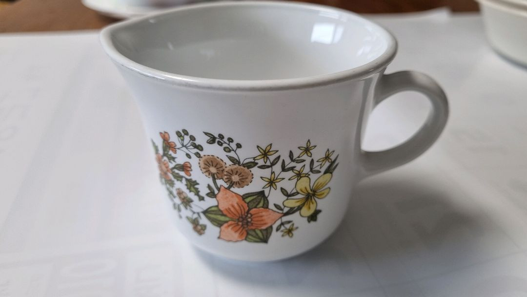 클래식한 꽃무늬가 예쁜 코렐 빈티지 크리머. 상태 양호하고 따뜻한 추억의 아이템으로 좋을 것 같아요. 레트로 감성 좋아하시는 분께 추천드려요! 교환 환불 불가입니다