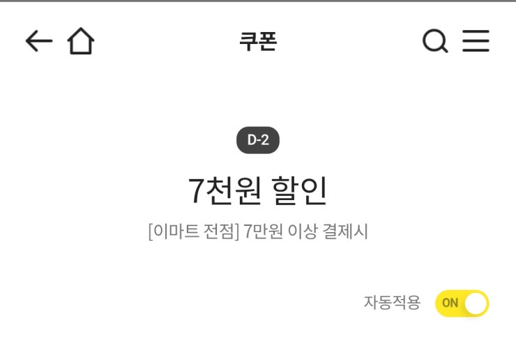 이마트 7천원 할인쿠폰(7만원 이상 결제시)