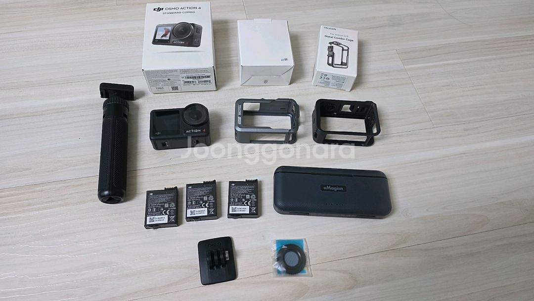 DJI 오즈모 액션4 팝니다 (24년 4월구매) 배터리 2개추가구매 충전케이스 알리에서 호화품 구매 액션캠 케이스 구매 보험 있음 (26년 4월 27일 만료) 메모리 없음 직거래는 화성시 우정읍입니다