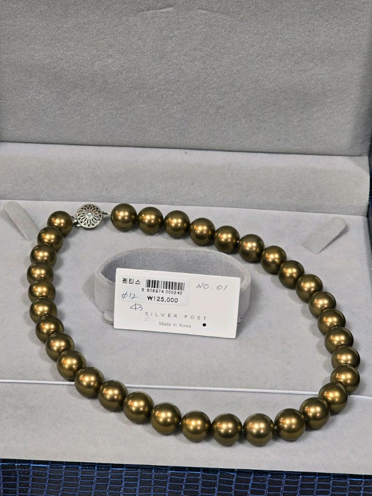 공방에서 만든 고급스러운 골드 핵진주 목걸이 입니다 고급스러운 파스텔톤 색감이라 어떤 옷에도 잘 어울립니다 특별한 날 포인트 주기 좋은 아이템입니다 선물용으로도 좋습니다 진주 12미리 길이 43센치 편의점 반값택배 1,900원.