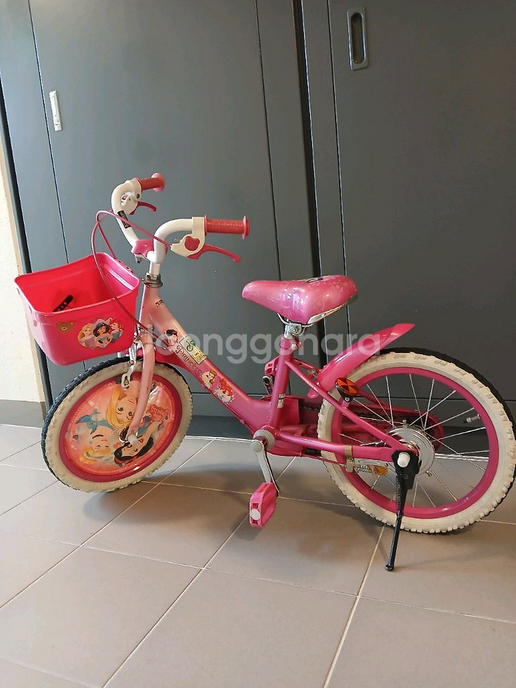 16인치 삼천리 자전거 입니다. - 자전거는 프린세스 그림이 그려져 있습니다. - 안장에 찢어짐 있습니다.(사진참고) 안장만 교체하셔도 될 것 같습니다. -보조 바퀴 따로 보관중. 같이 드립니다. 이사로 저렴하게 판매합니다.
