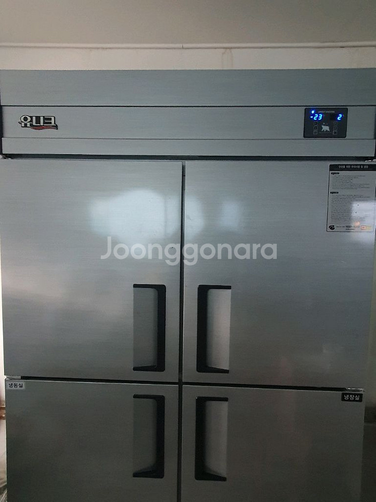 개인정보(거래정보)를 주고받는 행위는 사기에 노출될 수 있으므로 즉시 중고나라로 신고해 주세요업소용 냉장고 냉동고 팝니다(유니크 냉장고 냉동고 4도어) 상단 2개, 우측 하단은 냉장이고 좌측 하단은 냉동입니다. 사용감 어느정도 있습니다. 지금 1층에 있고 계단 2칸 내려가야 되니 이 부분도 꼭 참고 바랍니다.