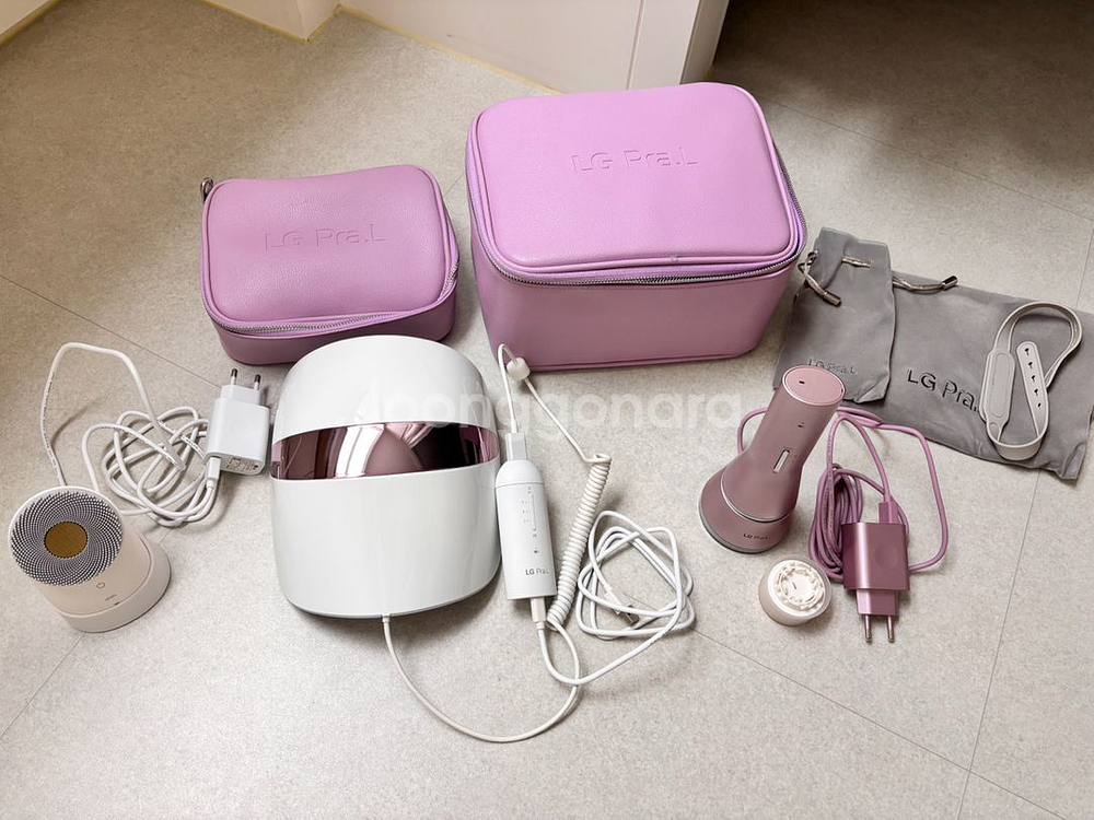 lg 프라엘 더마 led 마스크 (BWJ1V) 입니다. 구매시에 전 구성품 다 구매했는데 현재 마스크+클렌저 제품2개 (듀얼모션클렌저, 초음파클렌저) 있습니다. 구매시 초반에 몇회 사용하고 그 이후로 사용을 아예 안했어요. 사진과 같은 구성품으로 있습니다. 세번째 사진의 듀얼모션클렌저 브러쉬 가지고 있긴하지만 브러쉬가 사용감 있으니 새로 구매하셔야 할 듯 합니다. 제가 경기북부 외곽살아서 택배 거래밖에 안될 듯 합니다.