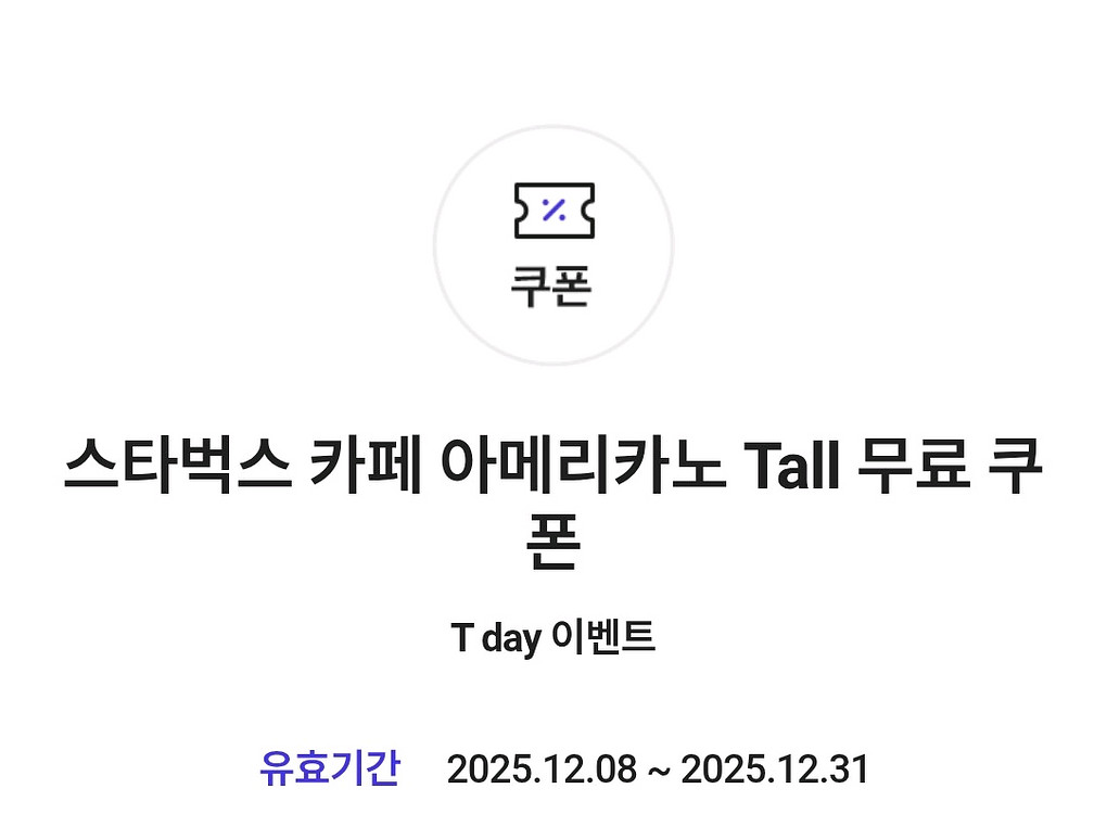오늘까지인 스타벅스 카페 아메리카노 Tall 무료 쿠폰 2장 4,000원입니다.