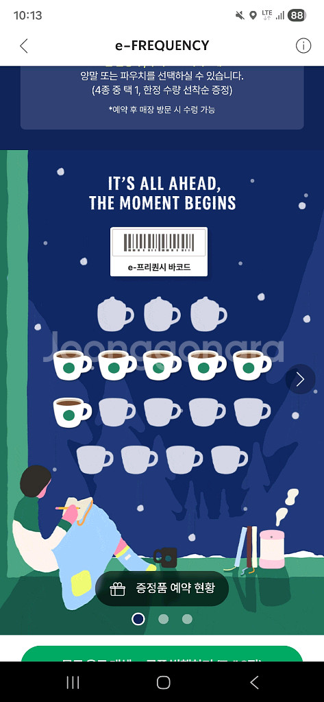 스타벅스 프리퀀시 일반 6장 2,500원.