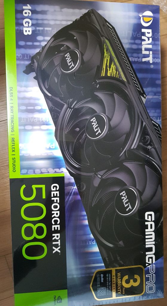 Palit RTX 5080 GAMINGPRO 그래픽 카드 미개봉 제품입니다 3년 워런티 보증 스티커 붙어있습니다 시리얼넘버기준 28년 10월 29일까지 본사 고객센터 직접 확인 해서 영수증 없이도 저 기간인 새 상품입니다 구입일 25년 11월 21일 입니다 영수증 원하시면 당연히 드립니다 중고나라 까페 거래내역은 많은데 앱은 처음이라 고가인 만큼 무조건 직거래 희망합니다 위치는 신림역 5번출구 근처에서 가능합니다 차로 오시면 가까운 곳에 정차 편한 곳 알려드리겠습니다
