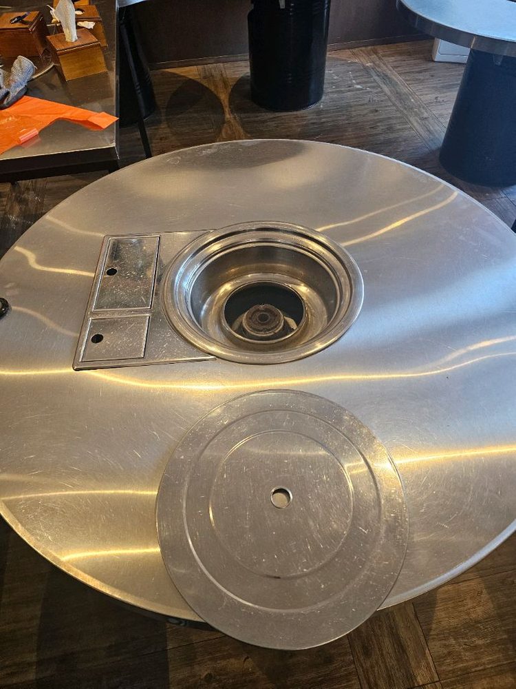업소용으로 사용하던 대형 떡갈나무불판이에요. 스테인리스 상판과 블랙 다리로 구성되어 있고, 사용감은 있지만 아직 튼튼하게 사용 가능합니다. 01038625108 개당 75000원에 팝니다