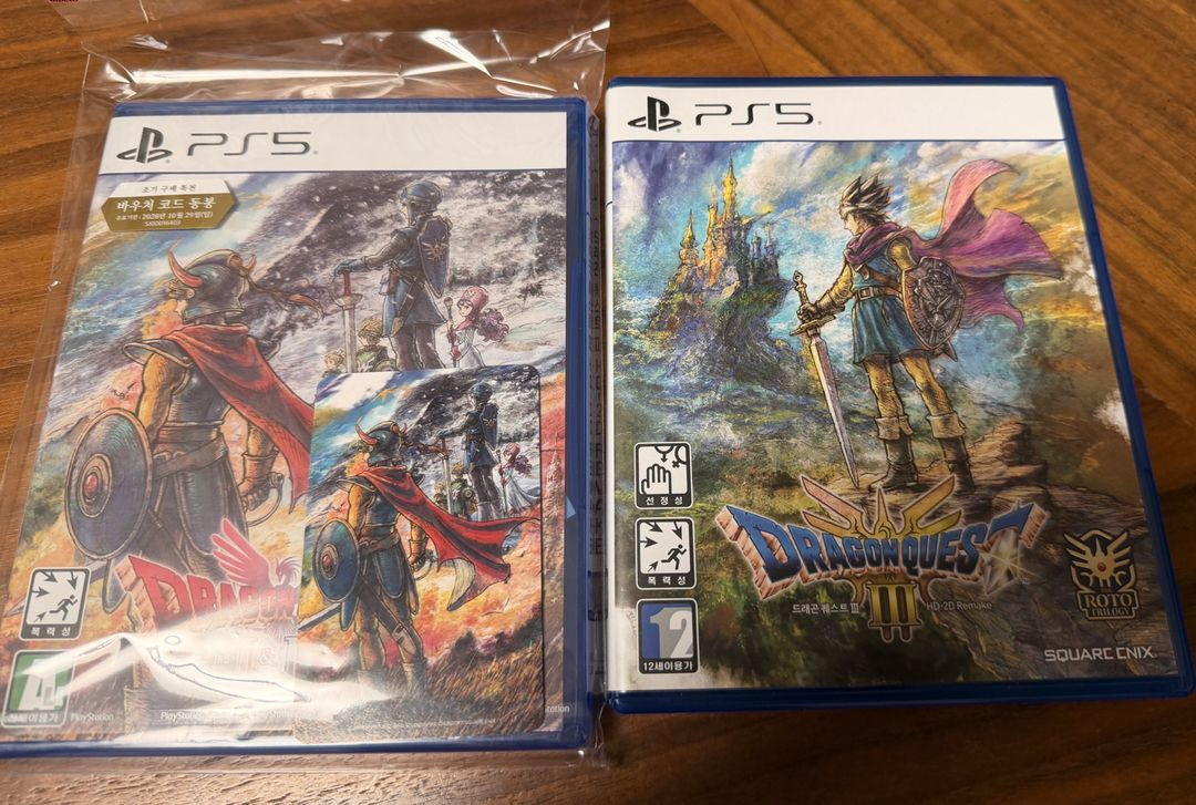 PS5용 드래곤퀘스트 1&2 는 미개봉(OPP필름포장) 드래곤퀘스트 3 는 개봉품입니다. 명작 같이 구매하세요 택배비 포함입니다. 인기 RPG 시리즈의 HD 리마크 버전이라 화질 업그레이드도 되는 것 같아요! 상식선에서의 네고는 연락주세요 일괄우선이구요. 개별판매는 따로 문의주세요
