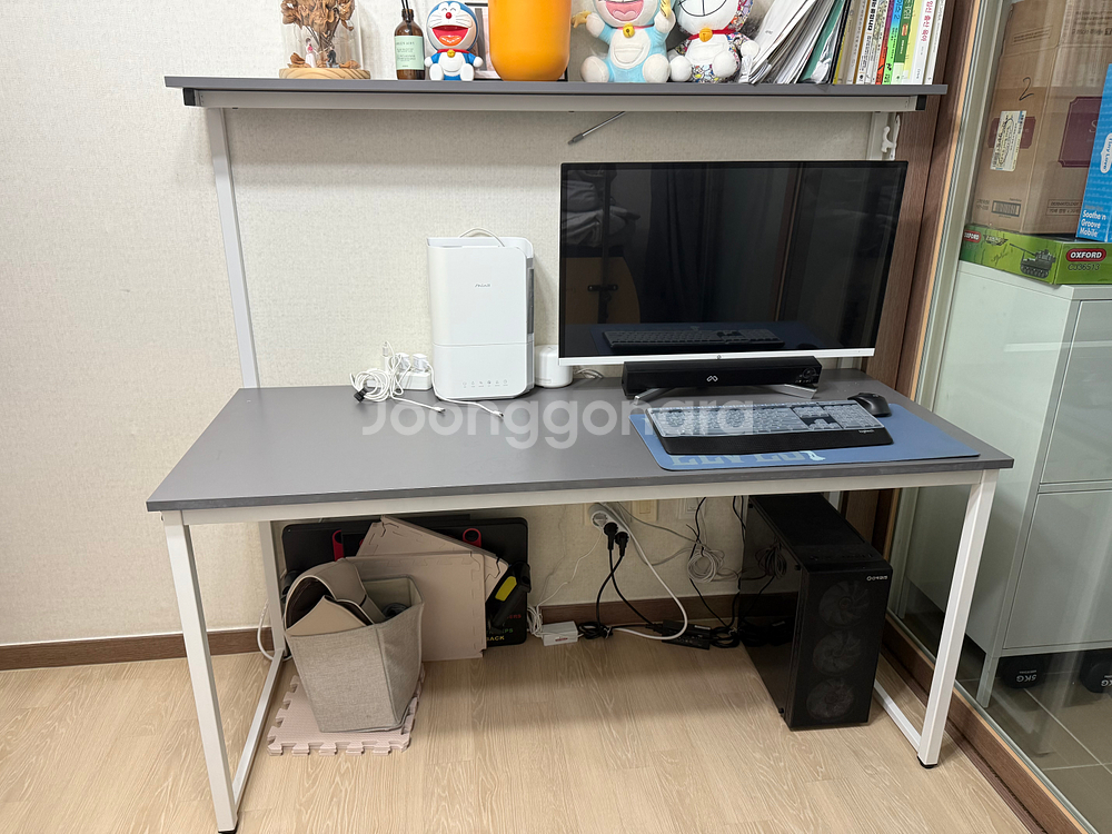 깔끔한 그레이 컬러의 컴퓨터 책상이에요. 상판 위에 모니터와 각종 장비를 올릴 수 있고, 하단에는 수납공간도 있어서 실용적입니다. 사용감은 있지만 전체적으로 깨끗한 상태예요. 길이 150cm 폭 60cm 높이 1단 74cm 2단 138cm 1/9에 이사날이라 오전9시~9시30분쯤 오시면 사다리차로 1층에 내려드릴수있습니다.