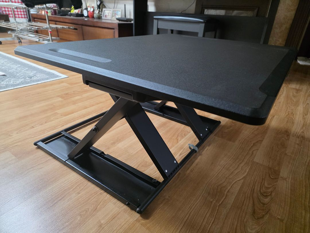 높이 조절 가능한 리프트업 스탠딩데스크예요. 사용감은 있지만 기능상 문제없이 잘 작동합니다. 편안한 자세로 작업하기 좋은 제품이에요. - 품명 : 스탠딩데스크 (높낮이 조절 기능성 책상) 책상 양쪽 옆의 버튼을 잡아 락킹해제 후 상하 높이 조절 - 모델명 : SRD-FLAT - 규격 : 800 * 600 * 60 (접었을 때) 400 (폈을 때) - 중량 : 15Kg - 사용 기간 : 약 4년 - 상태 : 동작 잘 되고 기능 이상없음 외관 찍힘 등 없으며 외관 양호 - 영일영.오사사공.영영이일 - 직거래만 원함 (인천 부평 평일 밤 8~10시 사이/ 주말 가능)