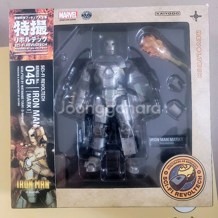 아이언맨 마크1 리볼텍 피규어입니다. 박스와 구성품이 모두 포함되어 있고 상태도 전시용이었어서 양호합니다. 해외배송 10만원 좀 넘게 주고 구입했습니다. 동일 제품 평균 판매가보다 많이 저렴합니다